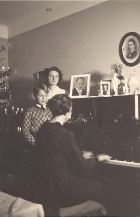 Inga, Lars-Gustaf and Inez at the piano. On the wall a photo of Inga's father Karl.